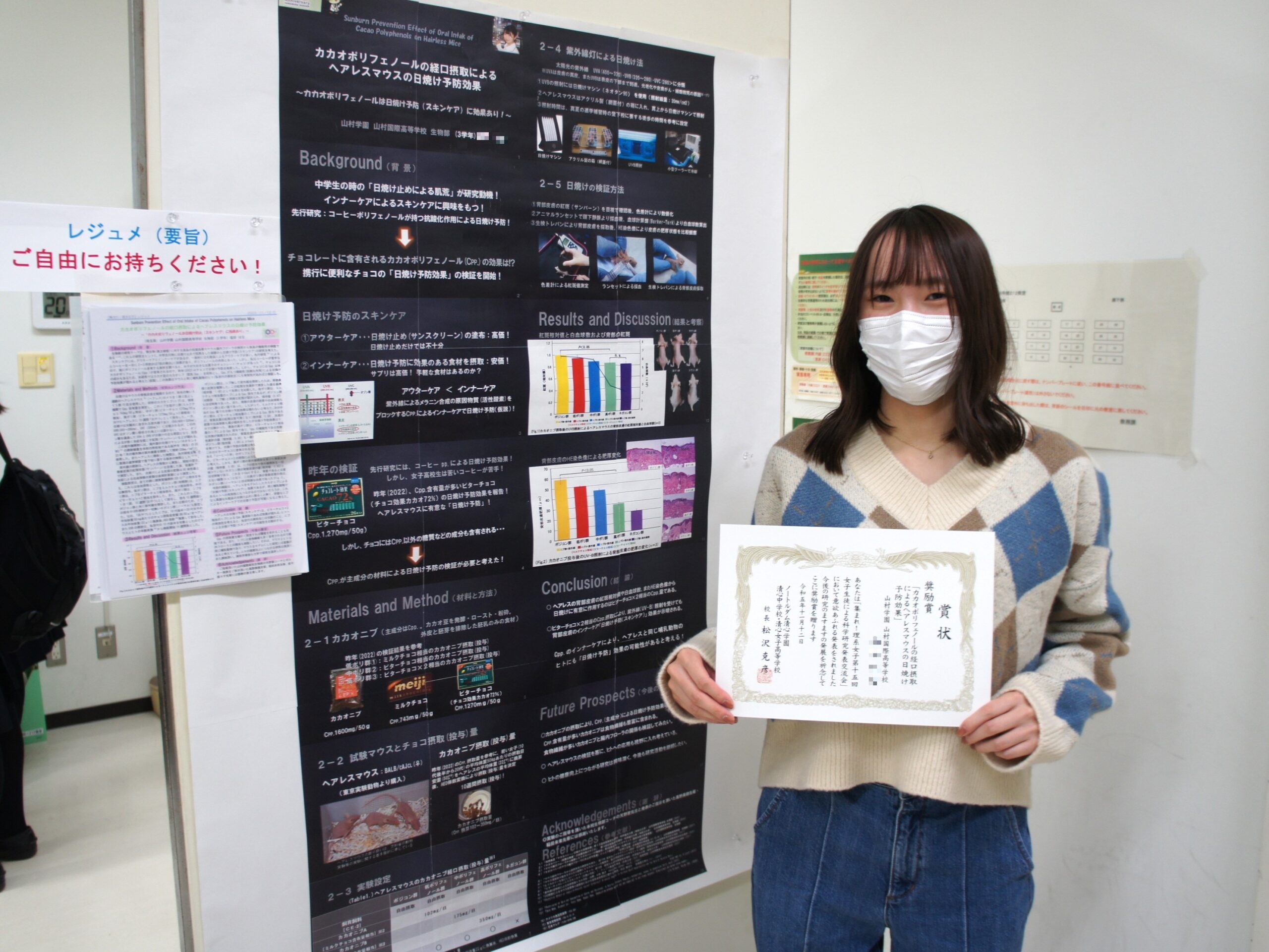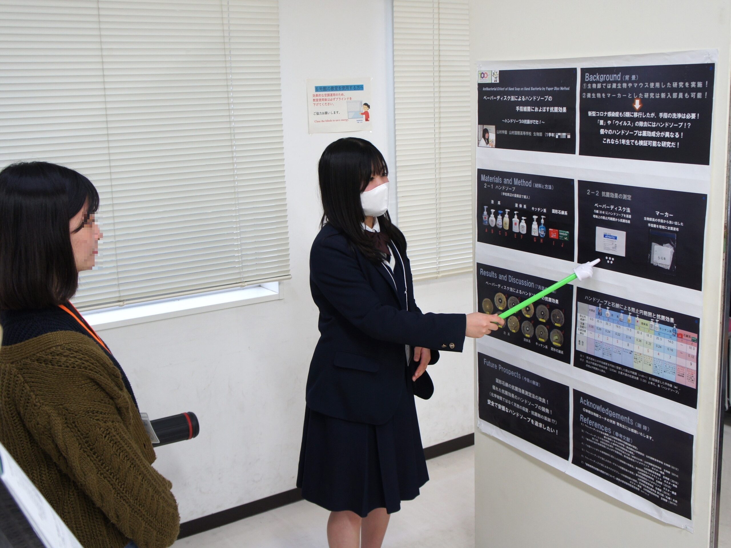 日本語ポスターセッション:1年生はペットボトル飲料に混入した口腔菌の除菌法を発表しました!