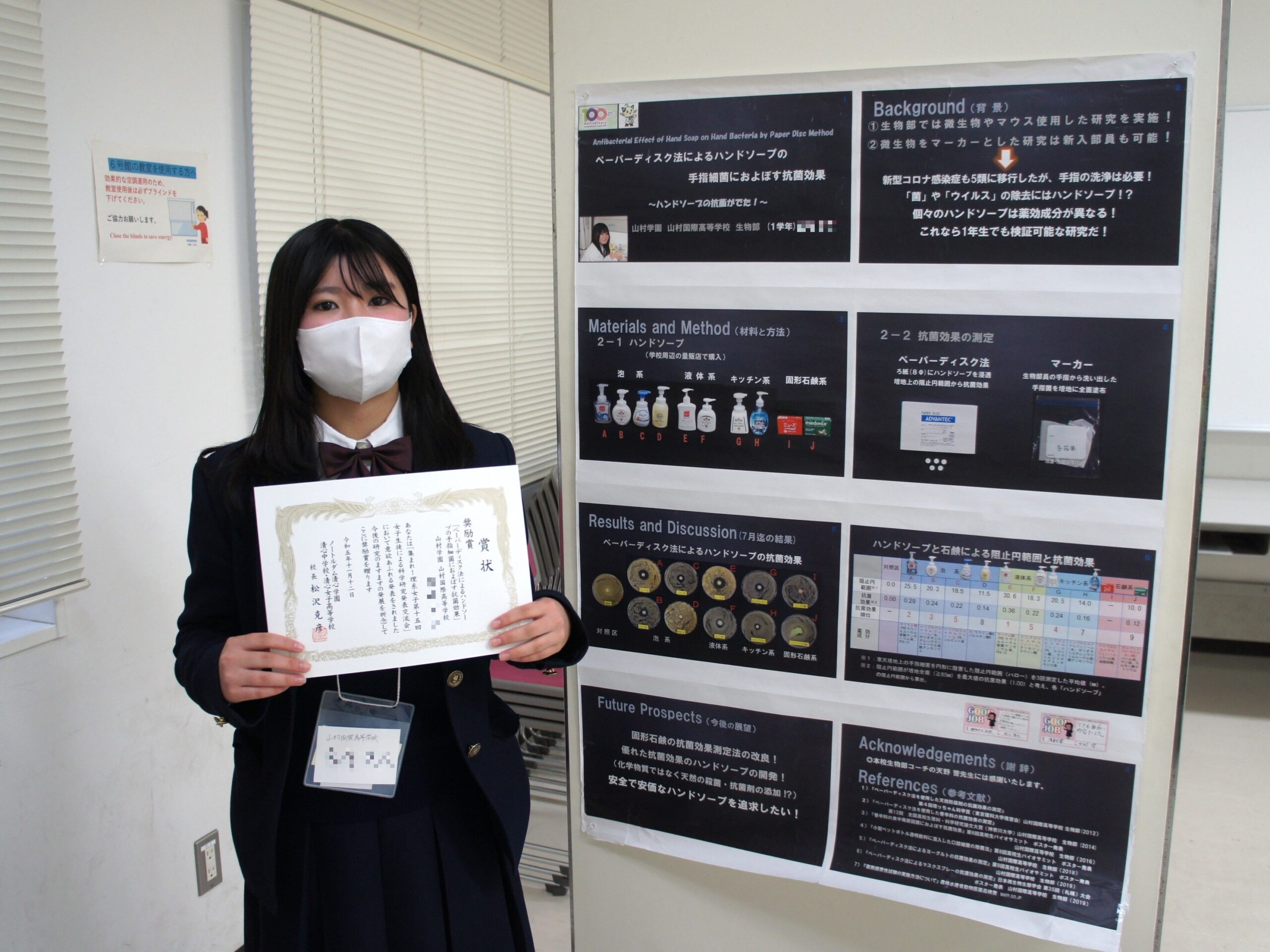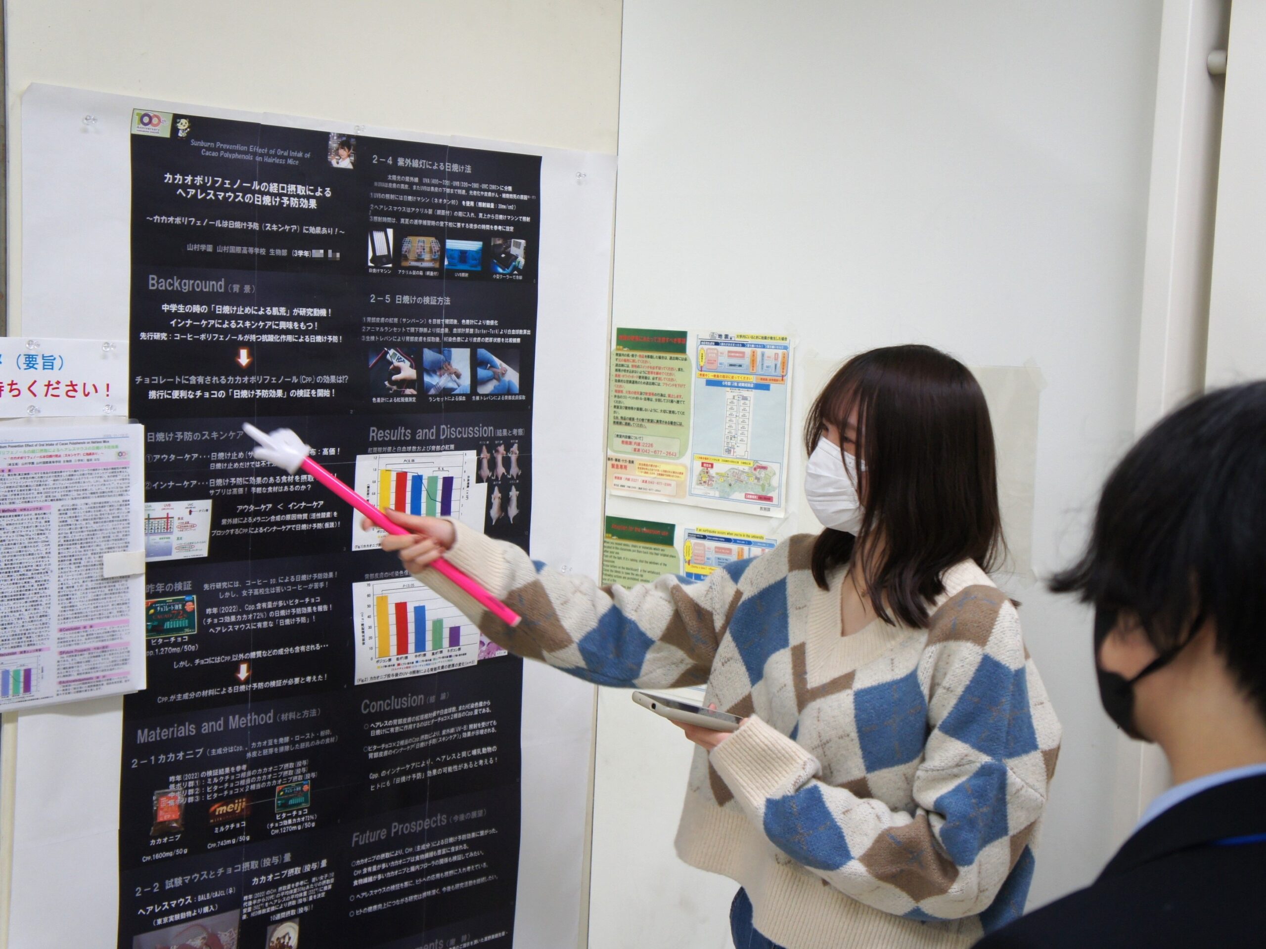 日本語ポスターセッション:1年生はペットボトル飲料に混入した口腔菌の除菌法を発表しました!
