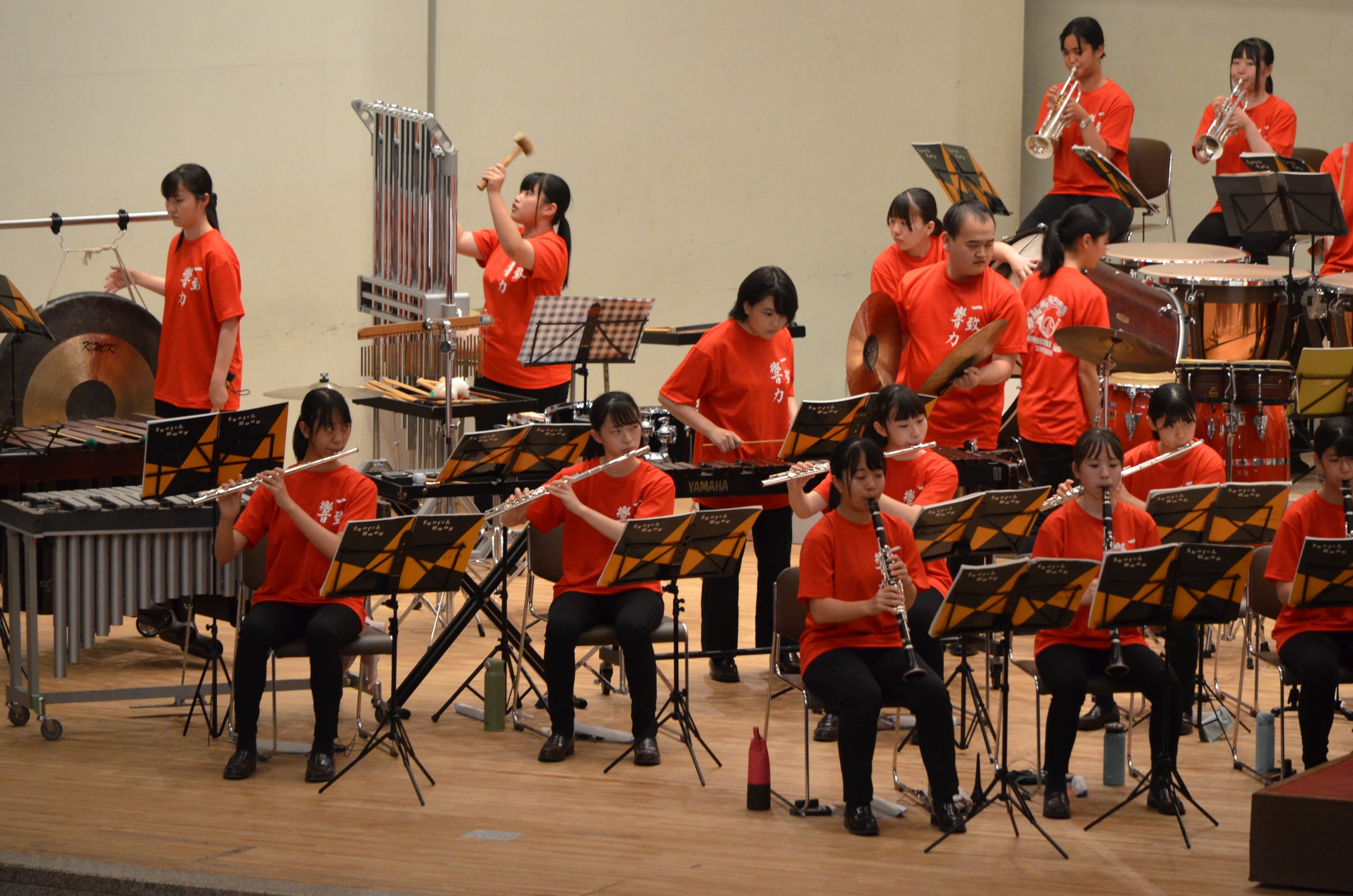 本来であれば、コンクールや発表会、野球応援、夏季合宿など技術向上のために練習を積み重ねていく中でのホール練習として行う予定でしたが、8月末の大会も延期になってしまい、急遽「ミニコンサート」としてご披露させていただくことになりました。 終演時には会場に駆けつけてくださった保護者の皆さんからの温かい拍手が、ホール内に響いていました。 保護者の皆様、OB・OGの皆さん、御協力ありがとうございました。