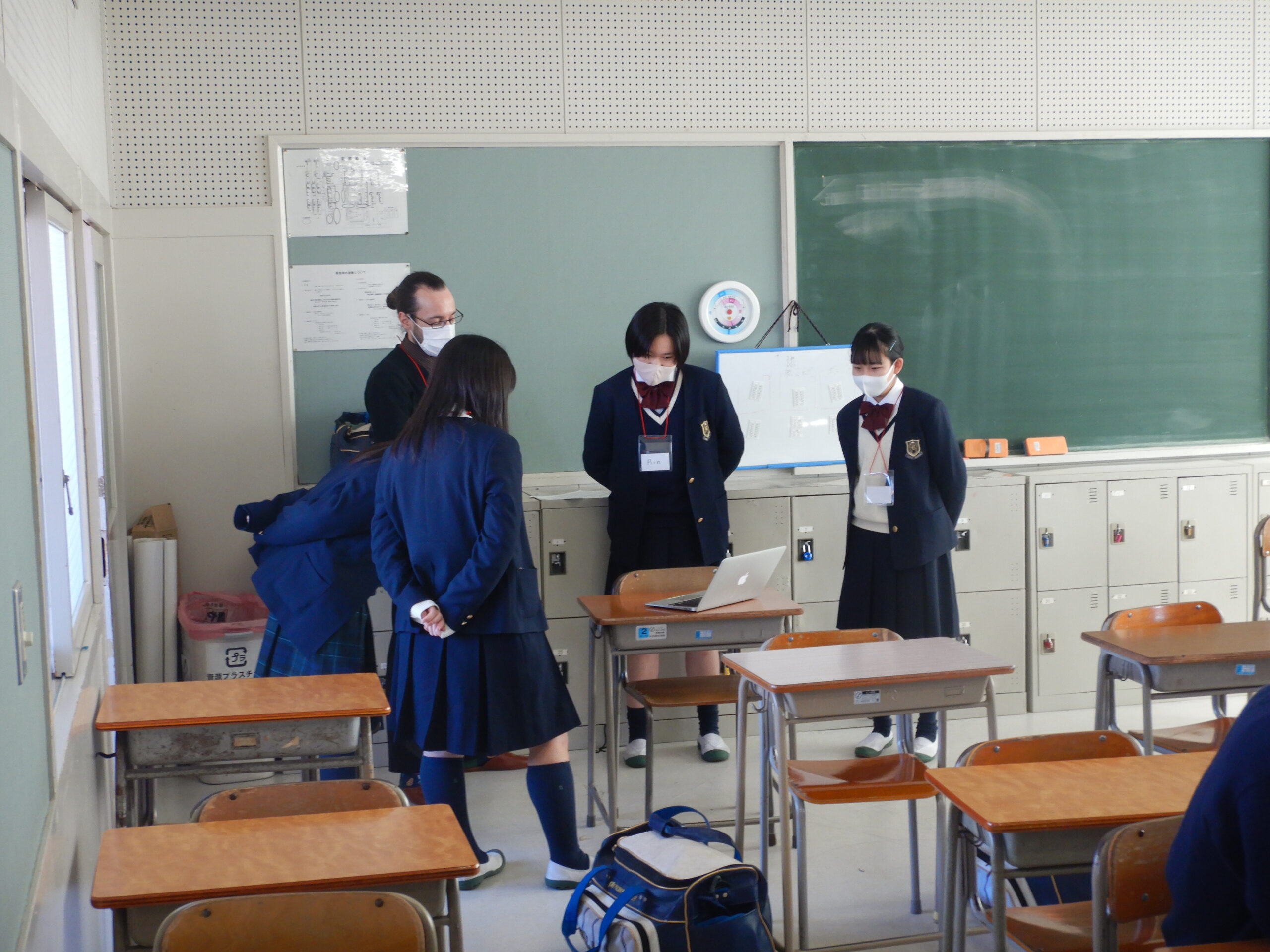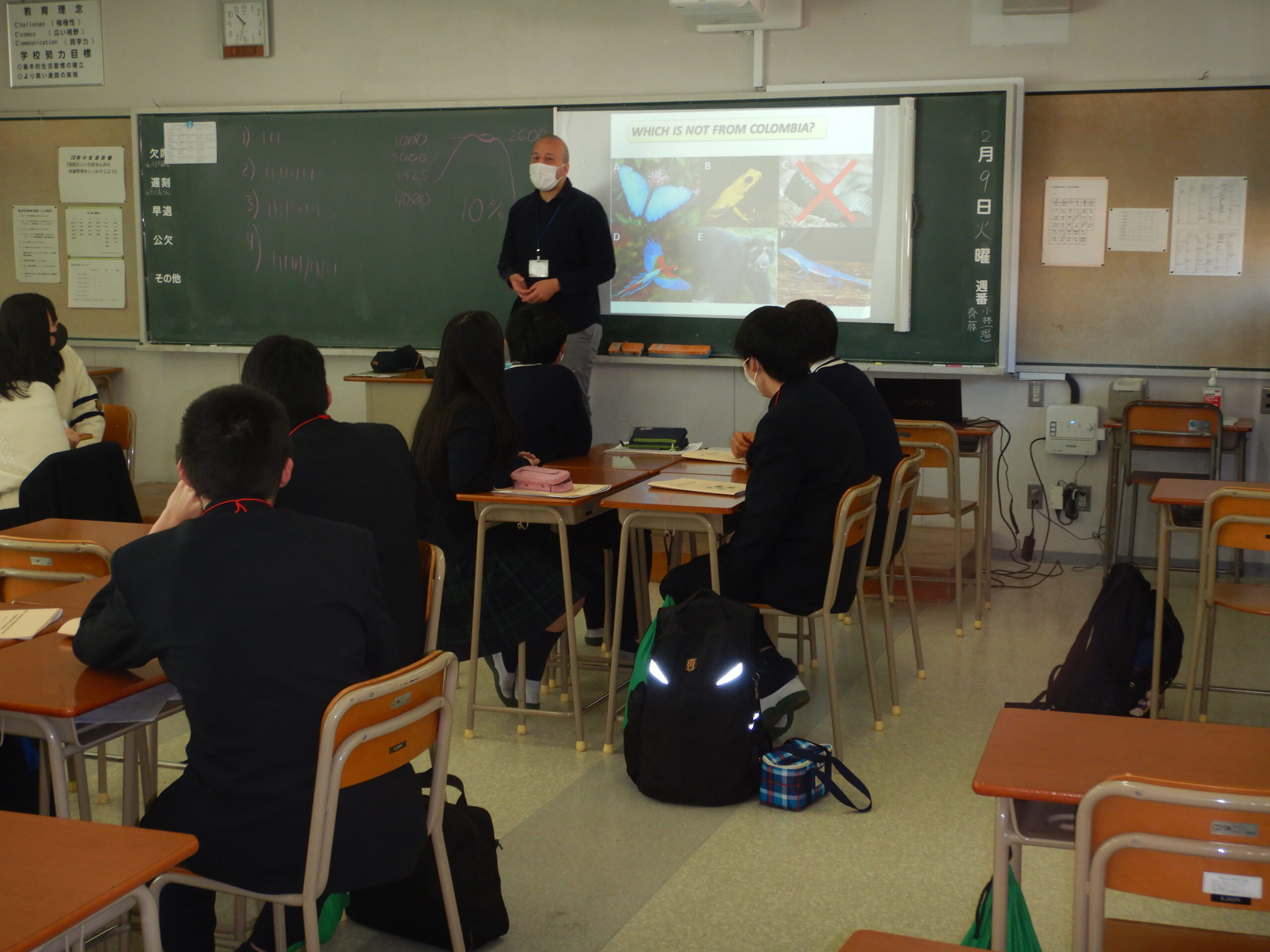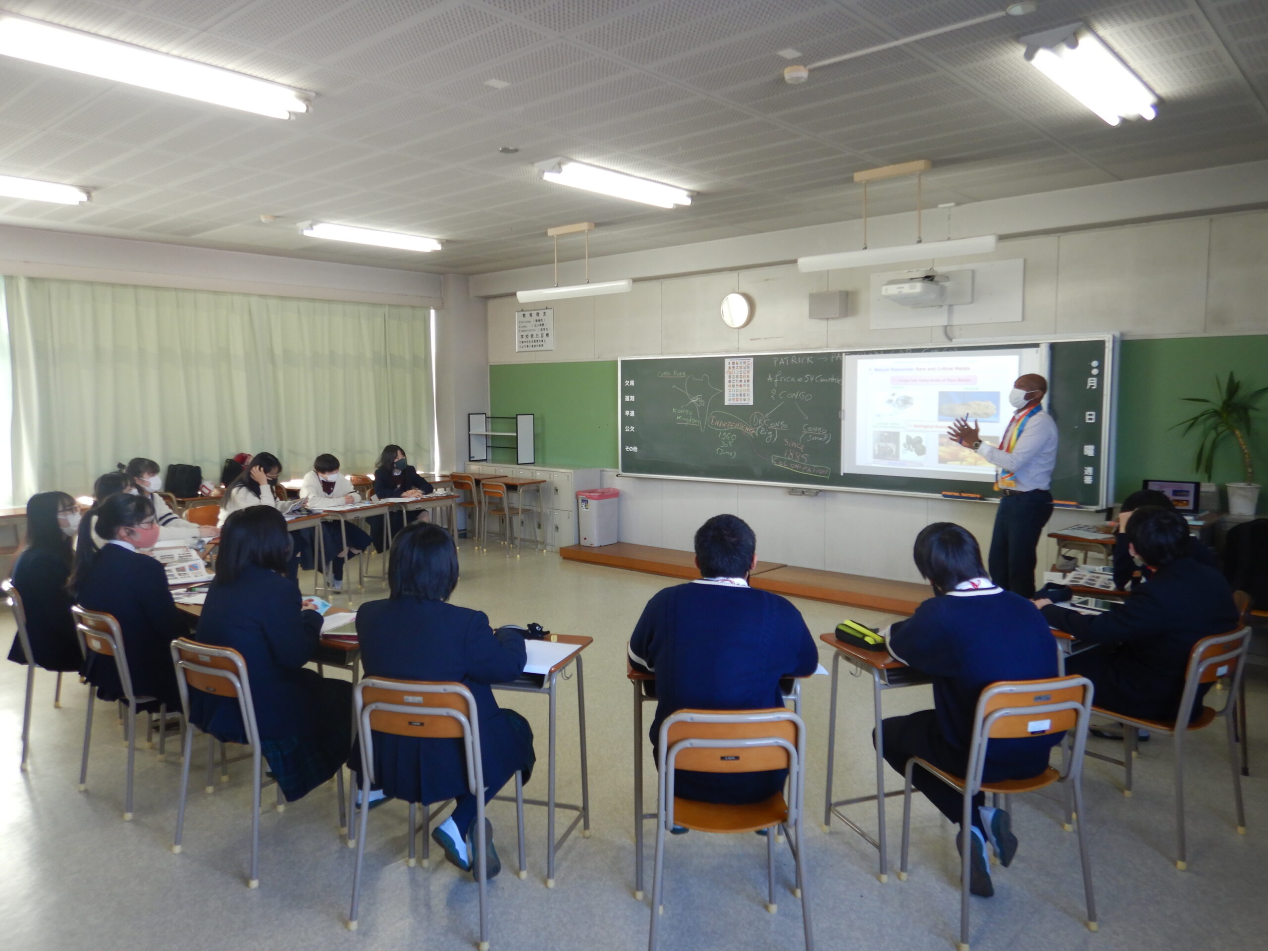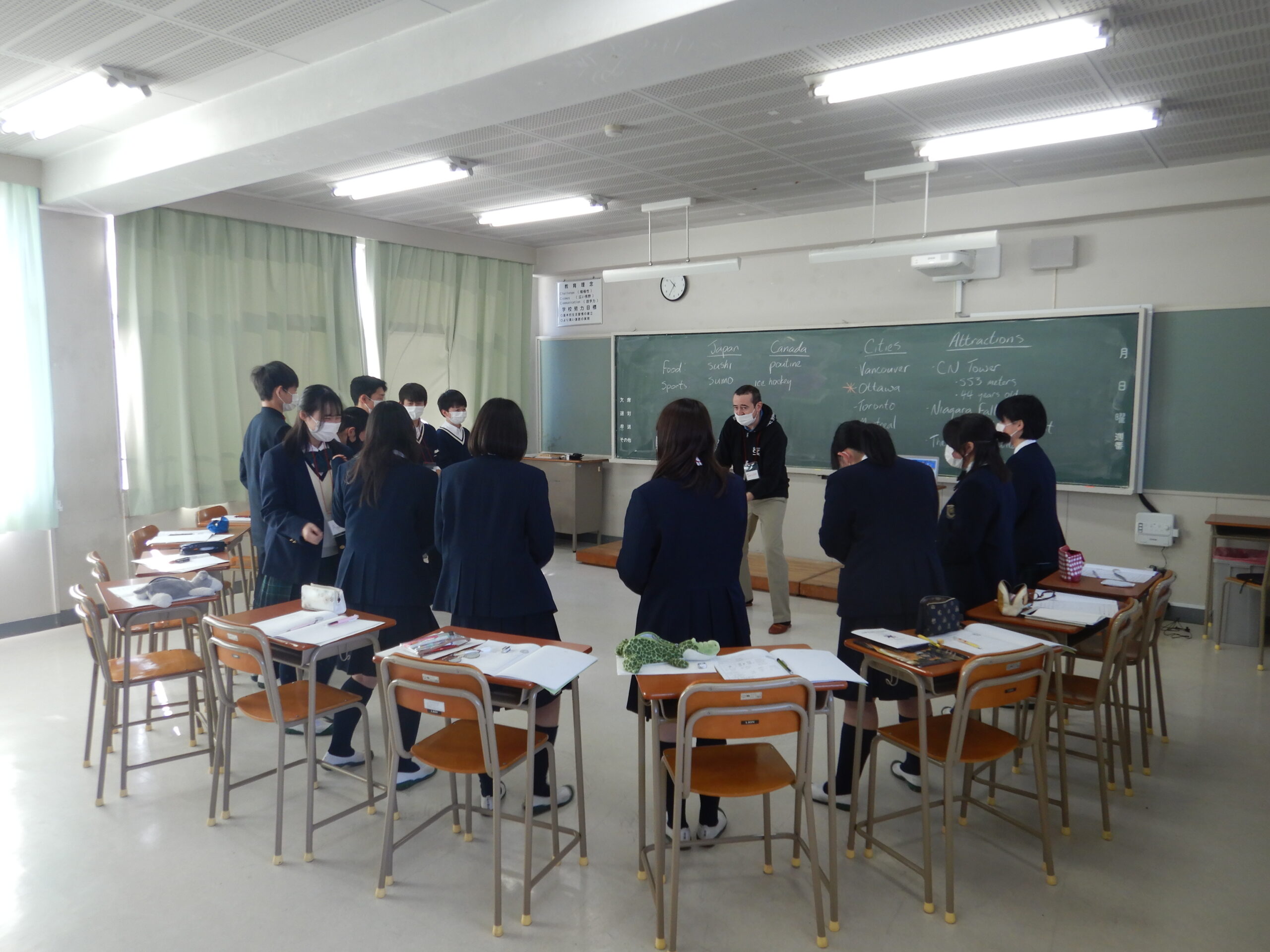 初日は、普段とは全く異なるオールイングリッシュの環境と、学年内の全クラスをシャッフルして編成されたグループの新鮮さに期待を膨らませている生徒もいれば、緊張を露わにしている生徒も見られました。しかし、授業を通じて徐々に多くの生徒が英語での活動に慣れ親しむようになりました。各クラス内では、講義形式の授業やアクティビティを通じて、講師の出身国についての学習や、多種多様なアクティビティが行われ、生徒たちは戸惑いながらも懸命に取り組んでいました。
