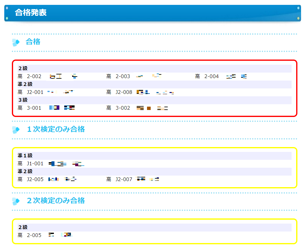 その他、2級合格3名 準2級合格2名 3級合格2名 で