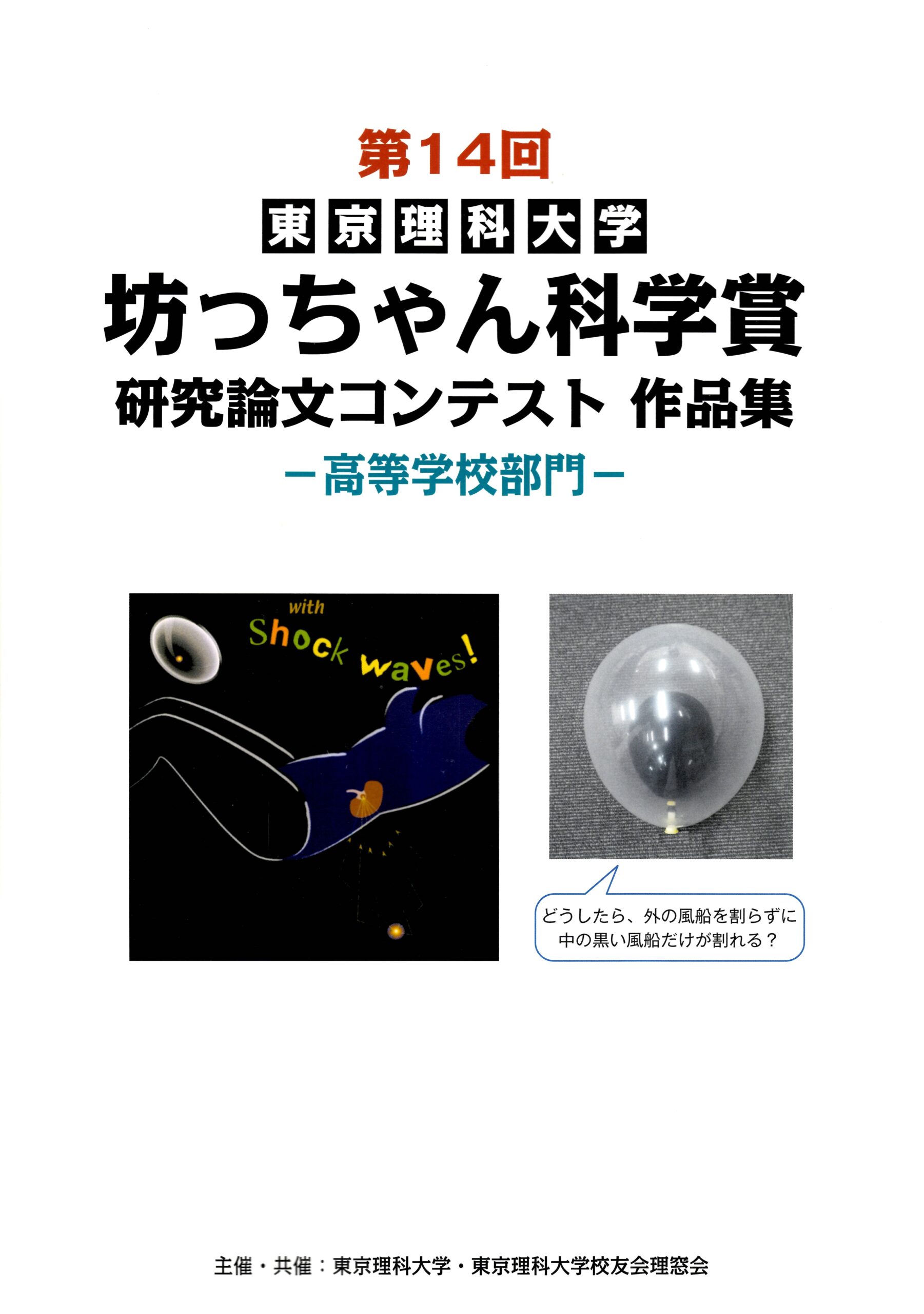 生物部です!昨年(2023)9月の「第14回 坊っちゃん科学賞 研究論文コンテスト(高等学校部門)※」(主催:東京理科大学 東京理科大学校友会理窓会)において『優良入賞』の審査結果を頂きました3年生の研究作品「カカオポリフェノールの経口摂取によるヘアレスマウスの日焼予防効果」ですが、11月の表彰式を経て、『第14回 坊っちゃん科学賞 研究論文コンテスト 作品集(高等学校部門)』に研究内容が掲載されました。