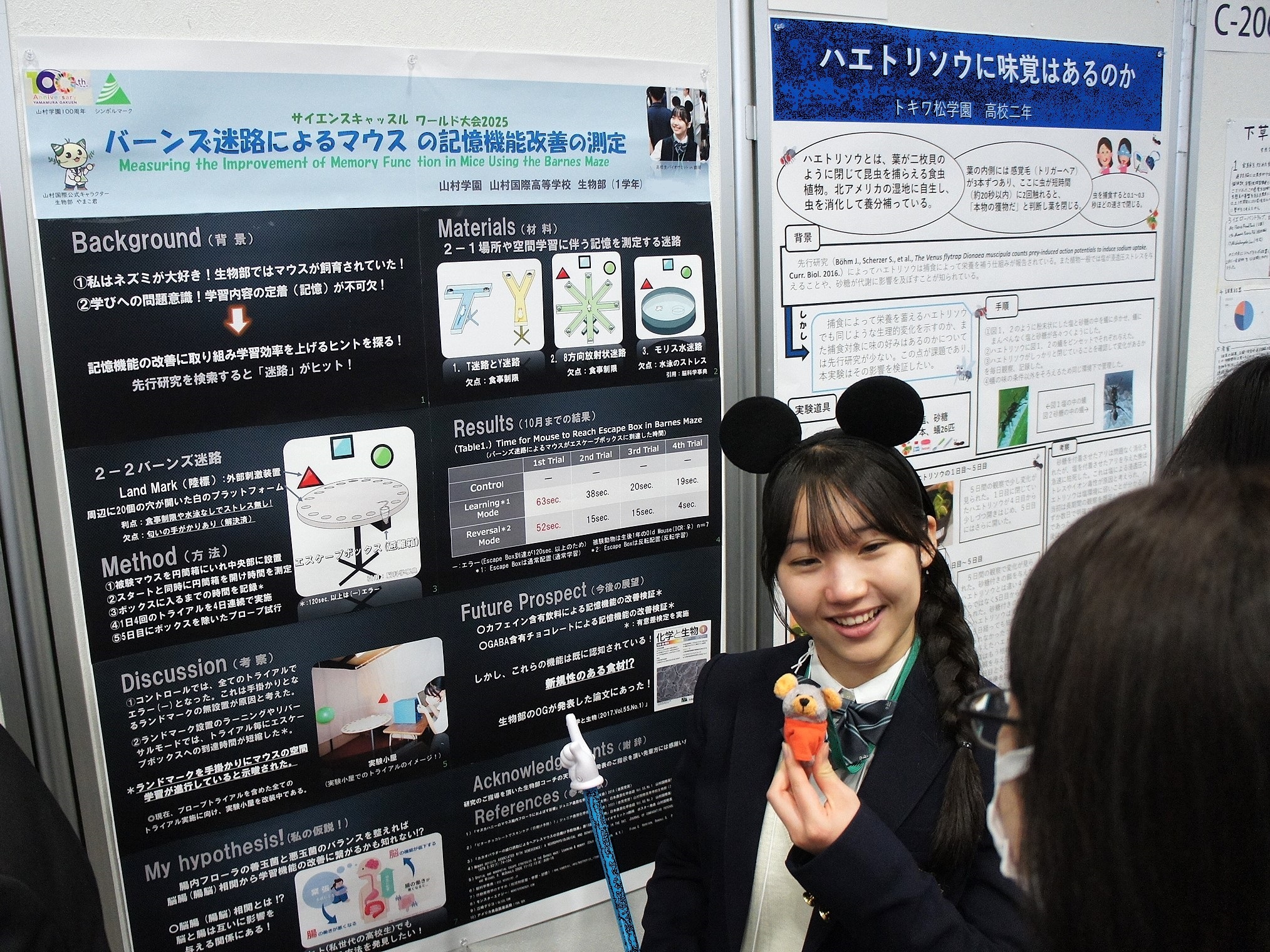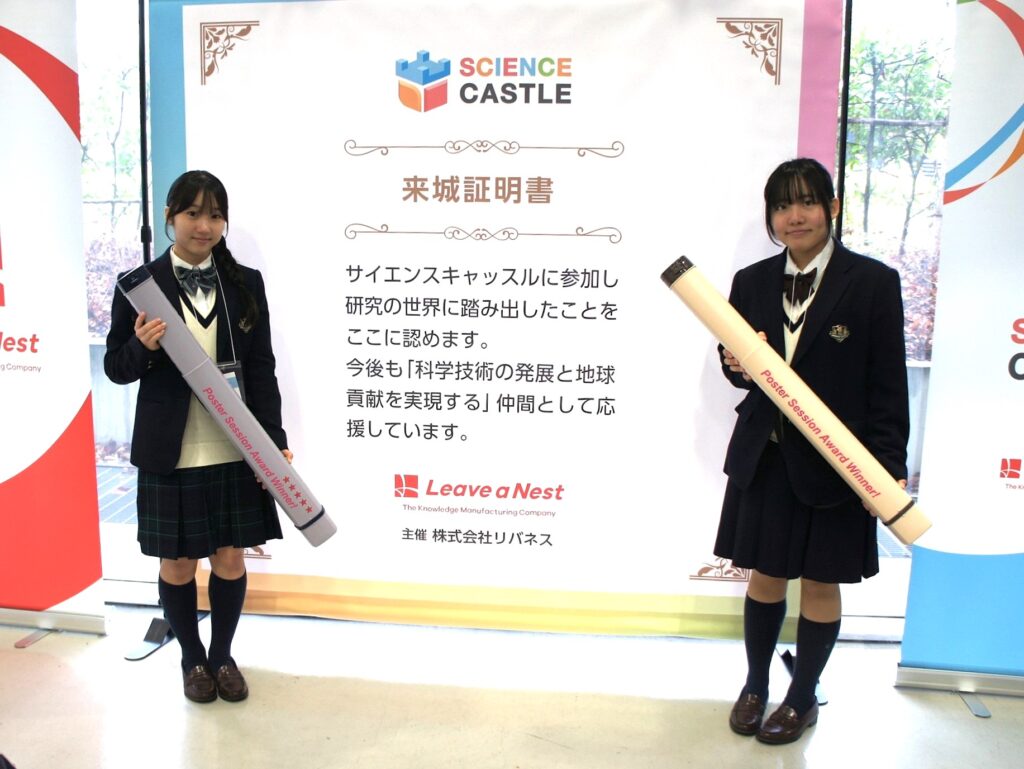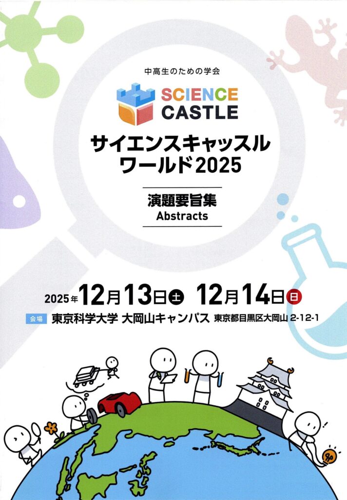 生物部です!12月13日(土)・14日(日)の両日に東京科学大学(目黒区)で催されました「サイエンスキャッスルワールド2025」(主催:リバネス)の選抜ポスター発表におきまして3年生の演題が『奨励賞』を受賞いたしました。