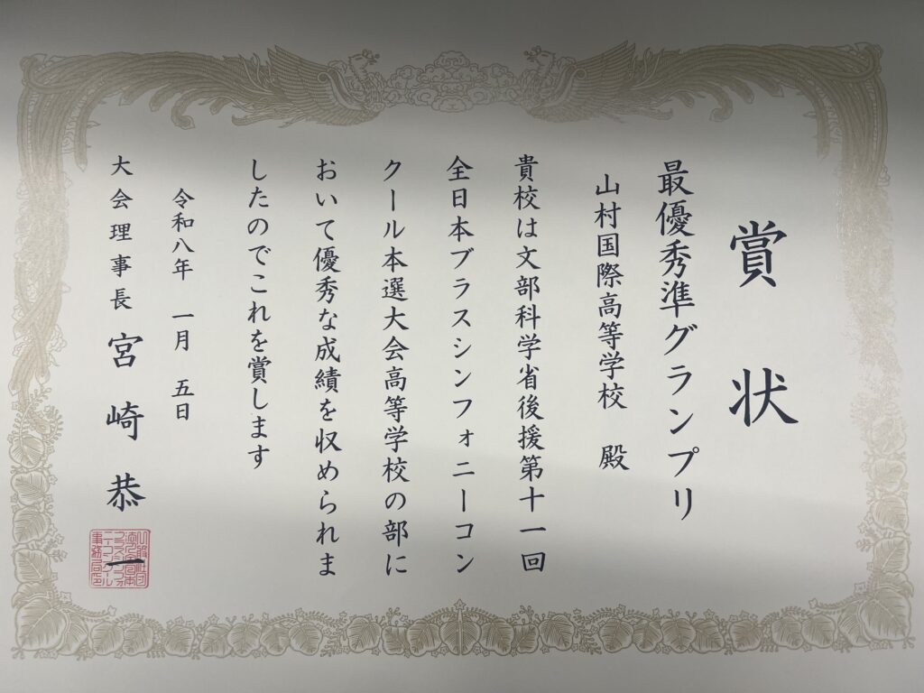 2026年1月5日に文京シビックホールで開催されました第11回全日本ブラスシンフォニーコンクール本選大会にて【最優秀準グランプリ】を受賞しました。