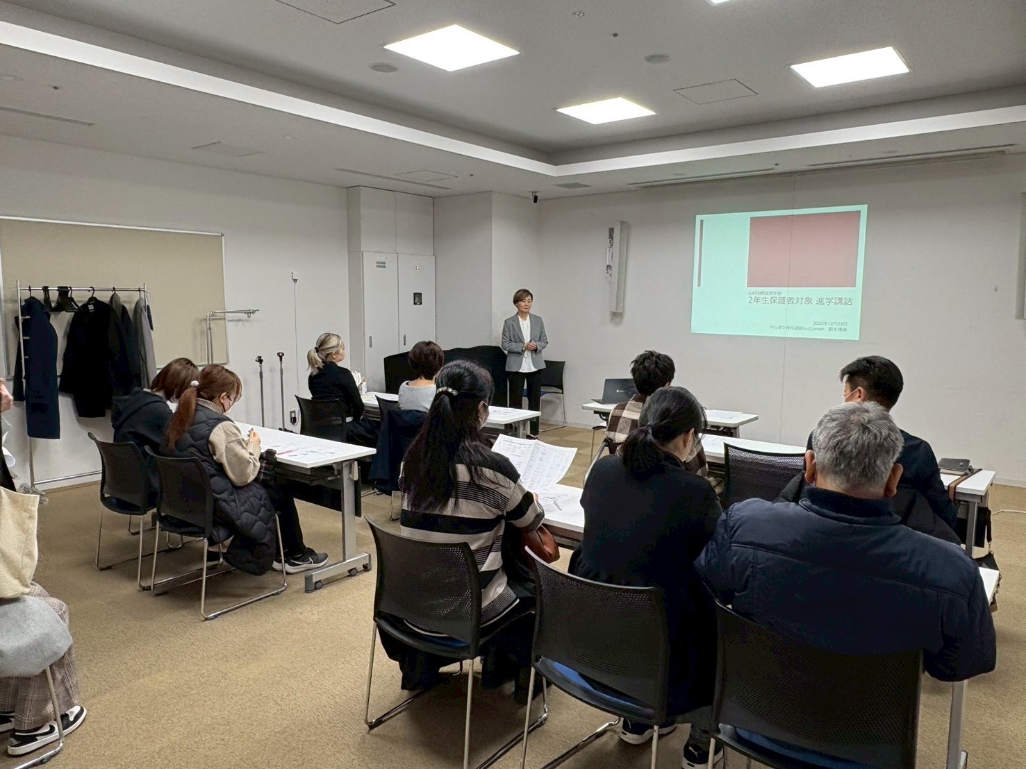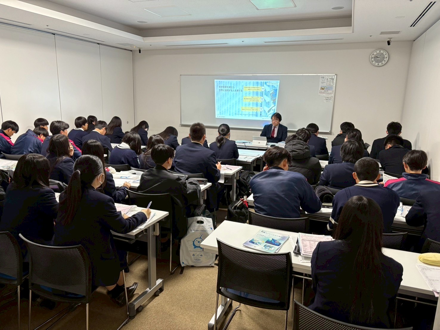 また、別会場では保護者対象の進学講話も実施いたしました。昨今の大学入試の現状や、進学先の選び方•仕組みについて解説があり、今後の進路選択に向けた有益な情報共有の場となりました。